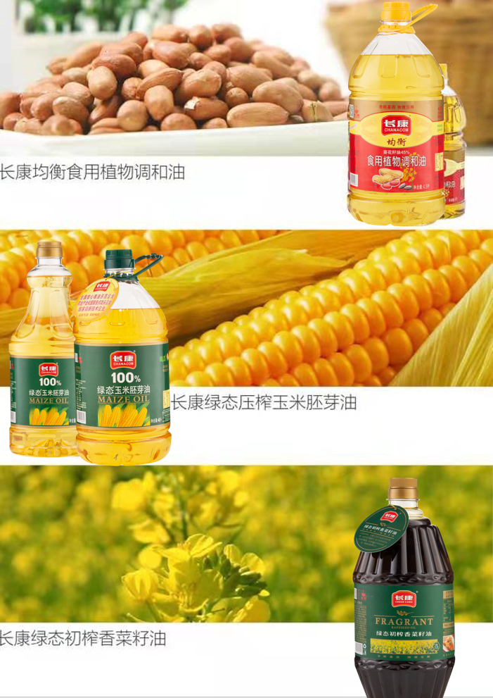 嚴(yán)選非轉(zhuǎn)基因原料成就好口感,傳統(tǒng)物理壓榨結(jié)合現(xiàn)代科技工藝保證安全原滋原味,嚴(yán)格質(zhì)量品控,長(zhǎng)康“綠態(tài)”系列食用油(菜籽油、玉米胚芽油、花生油、植物調(diào)和油...)滿足不同家庭的營(yíng)養(yǎng)和烹飪需求。